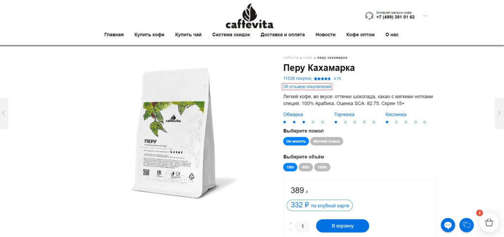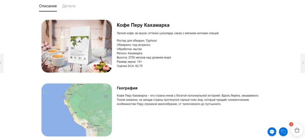 На каждой странице сорта кофе располагается его описание и вкусовые характеристики.